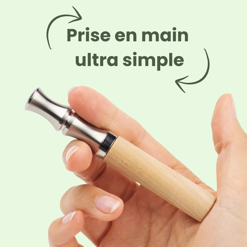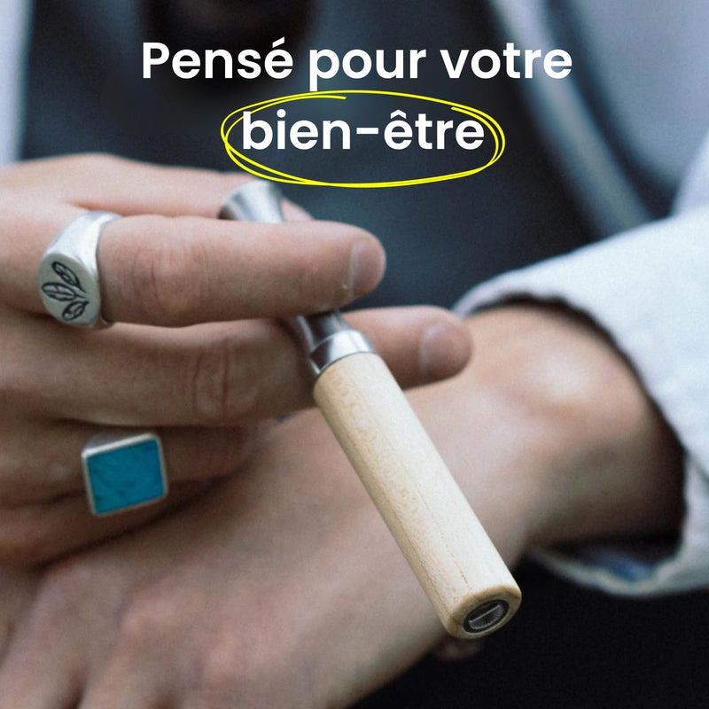 Un bâton en bois noble (noyer et érable) et des essences de plantes pures. Respire ce que la nature fait de mieux.