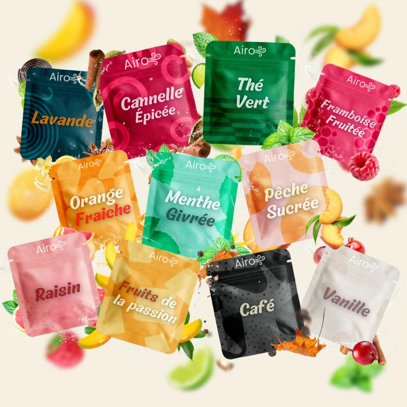 Les cartouches aromatisées Airo utilisent des fibres de qualité médicale infusées d'huiles essentielles d'origine végétale, sans nicotine, sans produits chimiques. Ils offrent des saveurs propres et naturelles qui satisfont l'habitude et aident à réduire les envies, sans fumée ni vapeur.
